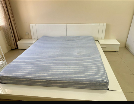 Bed is excellent condition mattress is so clean abd with two very accommodative side tables are free with bed and mattress.